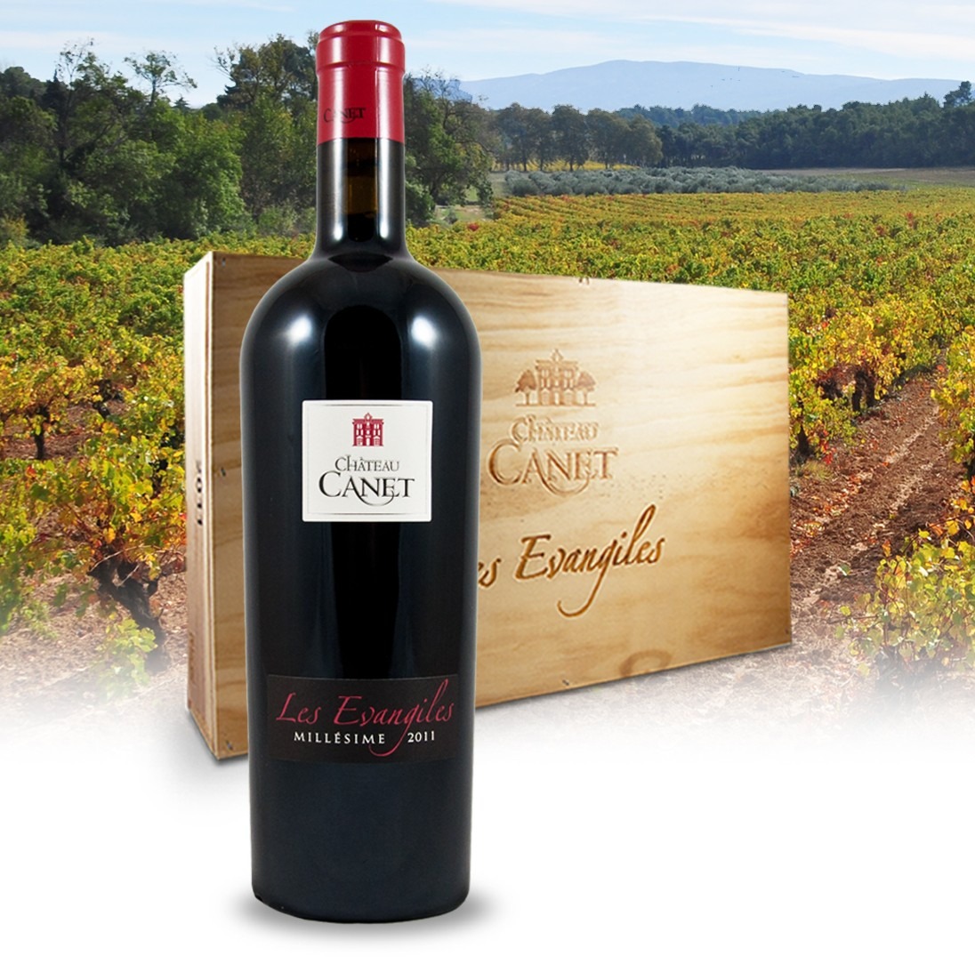 De naam 'Les Evangiles' komt van een kleine wijngaard in het midden van het domaine. Deze ligt wat hoger dan de rest van de wijngaarden, waardoor er een speciaal micro-klimaat heerst. De oogst van 24 hectoliters per hectare is klein, maar de kwaliteit van de druiven is excellent. Volgens wijnhuis Chateau Canet is Les Evangiles een traktatie om te drinken, maar ook om te maken. De rode wijn uit Zuid-Frankrijk is vol en rond met een royale fruitige smaak van zwarte bessen, bramen en een vleugje tabak, mokka en vanille. Door de stevige structuur en tannines zal de wijn nog vele jaren bewaard kunnen worden.